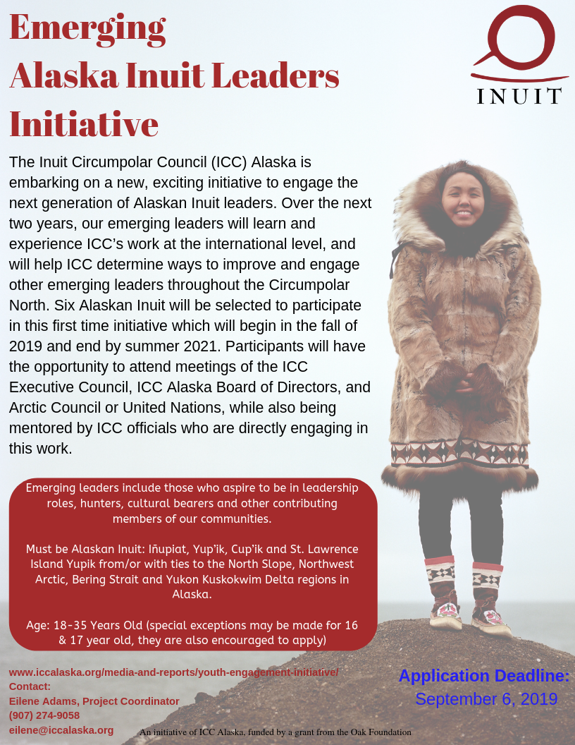 DetailsFor more information click HERE or contact Eilene Adams, Project Coordinator at 907-274-9058 or <eilene@iccalaska.org> Click HERE to access the application form.