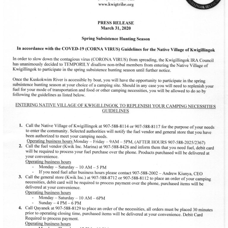 Press Release: Communities Along the Kuskokwim River Prepare for Significant Potential Flooding
