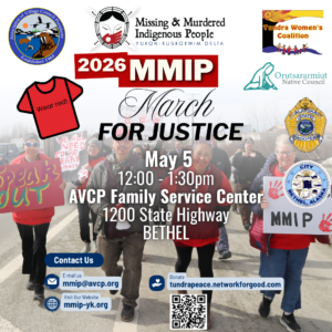 Join AVCP, in partnership with Tundra Women’s Coalition, Orutsararmiut Native Council, Alaska State Troopers , and City of Bethel, Alaska for the 2026 MMIP March for Justice.